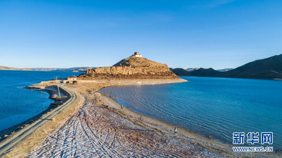 坐落于羊湖北岸一座小岛上的日托寺。新华社记者 孙非 摄