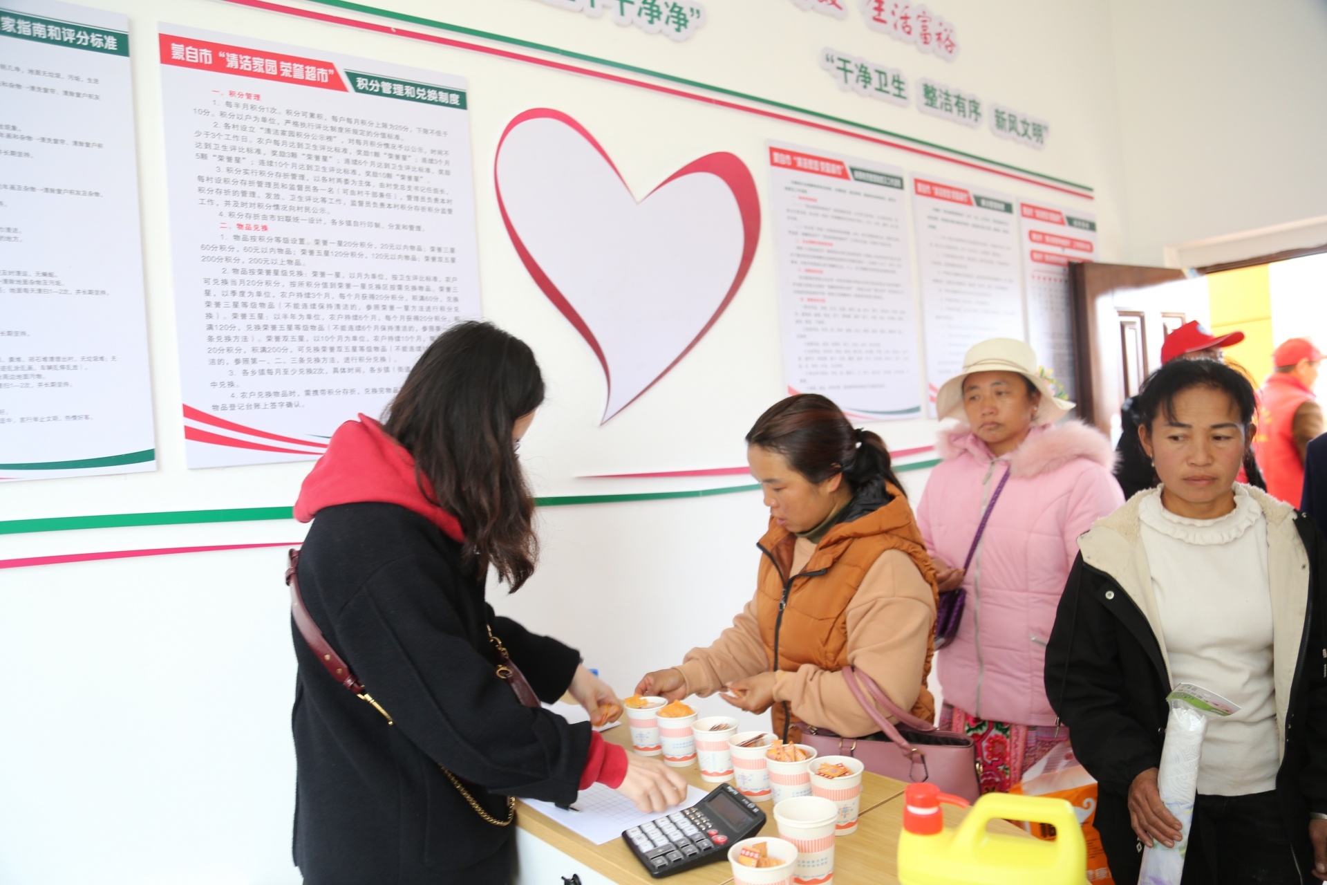 芷村镇群众赶集天到荣誉超市兑换积分。