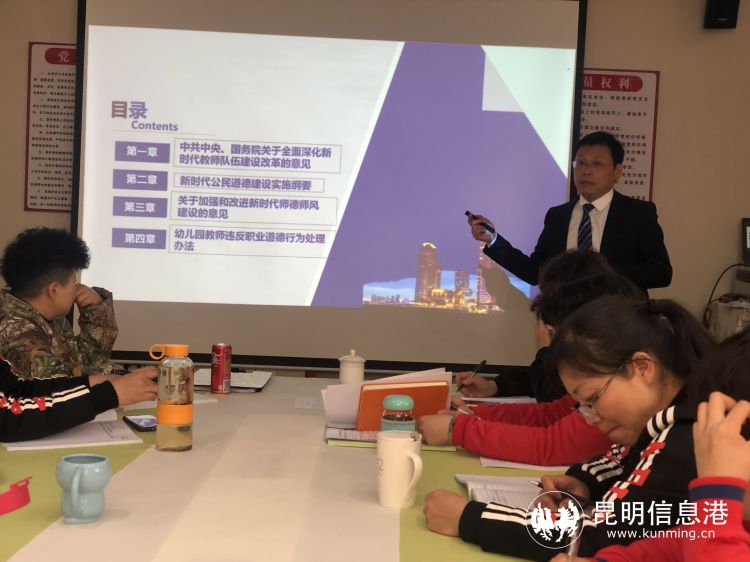 昆明信息港讯 记者甘凌菲 通讯员张露萍 良好的师德,高尚的师风是教师的立身之本,为进一步增强教师的责任感和使命感,不断提高教师的师德修养,3月2日,茨坝幼儿园组织全体教职工开展了2021年度春季学期教师师德、师风建设专题培训活动,特邀上海市汇业(昆明)律师事务所黄建军律师来园进行讲座。