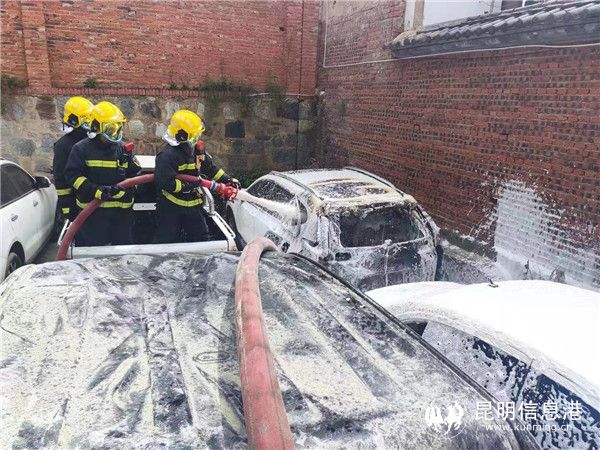 据介绍,当日13时54分,大理支队古城消防救援站接到一起报警称,大理镇三塔北路停车场有小轿车起火,现场停放车辆较多,情况紧急,该救援站立即出动4车18人前往救援。