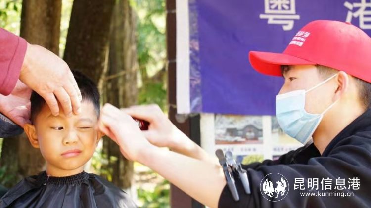 此外,今天是中国传统节日“二月二龙抬头”,老昆明都有“剃龙头”的传统,在这一天理发图个好彩头。为此,公园依旧是邀请了昆明粤港芭莎职业培训学校16名师生,现场为市民免费理发。一大早公园早已游人如织,很多市民早早地入园,准备沾点“龙王会”的喜气。很多市民排起长龙等待理发,一些小朋友剃出”西瓜头“、”阿福头“等可爱造型,活动现场热闹祥和。据统计,从上午9点至12点,免费在黑龙潭公园”剃龙头“的游客及市民约300人。