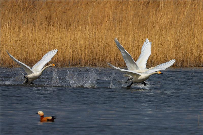 随着气温不断回升,位于新疆巴音郭楞蒙古自治州博湖县境内的博斯腾湖冰雪消融,湖畔迎来了大批候鸟繁衍栖息,它们时而翩飞起舞,时而觅食嬉戏,湖水、芦苇、各类水禽鸟类互为辉映,演绎出一幅美妙的“候鸟天堂”画卷。(年磊)