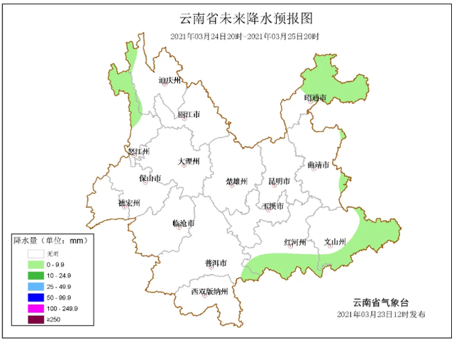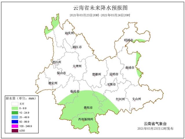 省气象台预计,24日,昆明主城区晴,气温9~25℃。全省范围内,迪庆北部、怒江北部、临沧南部、普洱、西双版纳、红河西部、昭通东部、曲靖东部多云局部有阵雨,其他地区多云间晴。(春城晚报-开屏新闻 记者孙琴霞 部分内容综合云南气象微信公号)