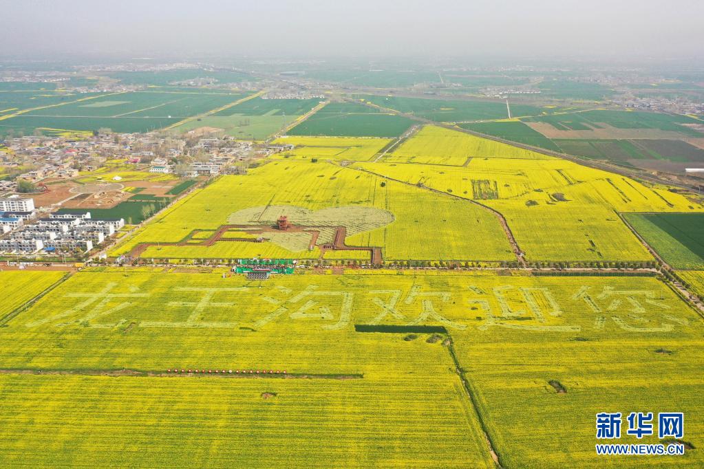 3月28日拍摄的宝丰县龙王沟乡村振兴示范区的油菜花田(无人机照片)。新华社发(何五昌/摄)