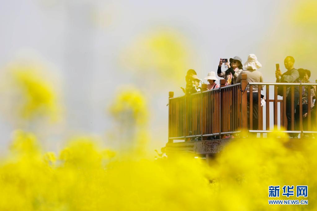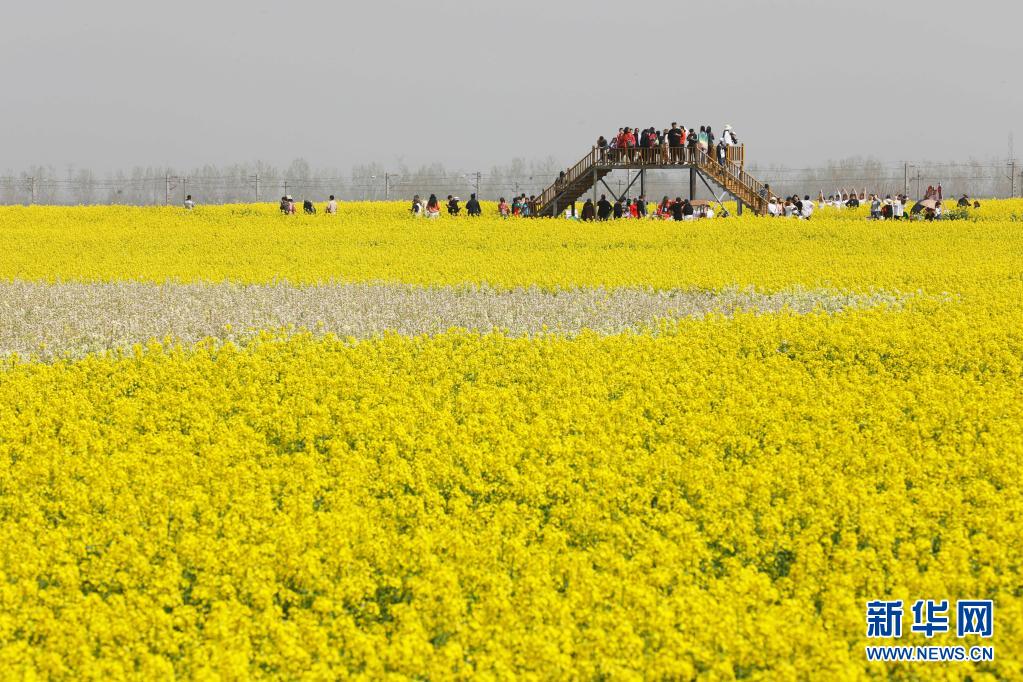3月28日,游客在宝丰县龙王沟乡村振兴示范区的油菜花田中赏花。新华社发(何五昌/摄)
