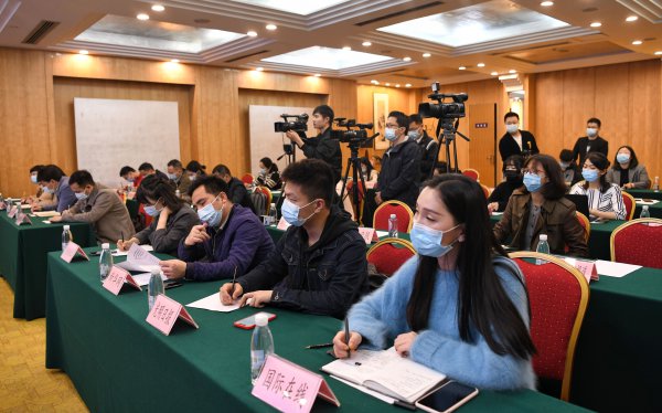 2021年3月30日,第三届世界大健康博览会新闻通气会现场。 长江日报记者 苗剑摄
