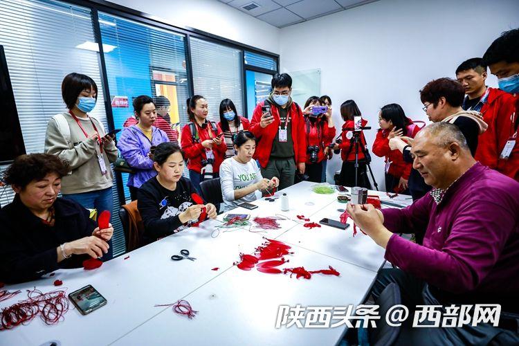 一折、一卷、六朵花瓣整齐罗列,细铁丝紧紧绕圈固定,一朵火红的手工花便成型了。“这个是我们的一些手工艺品,都是有延安特色的,如果你们想学的话,随时来,我们这里免费培训。”3月30日,在延安市宝塔区电商直播融合孵化服务中心的直播间里,60岁的退休工人董智玲正在直播间里给网友直播手工艺品制作,引来了众多记者的围观。
