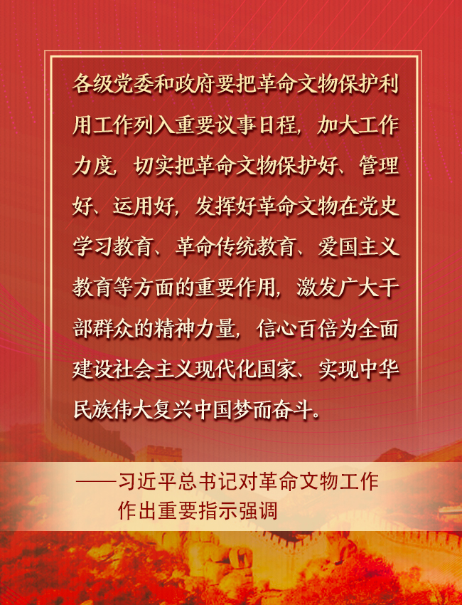 近日,习近平总书记对革命文物工作作出重要指示,深刻阐明革命文物工作的重大意义、目标任务和基本要求,为做好新时代革命文物工作提供了根本遵循。