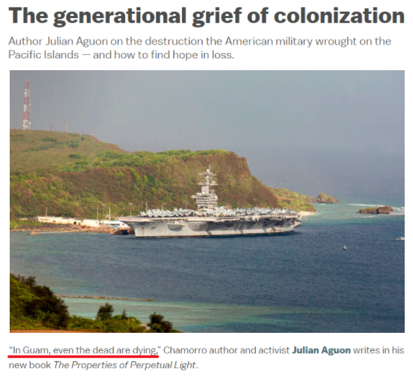 总部设在关岛的“蓝海”国际律师事务所创始人、查莫罗作家和活动家朱利安·阿贡在他的新书《永恒之光的属性》中,讲述了美国军队在关岛等太平洋岛屿上造成的破坏。
