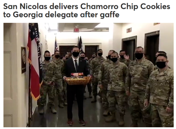 格林这番表态被媒体曝光后引发了多方嘲讽。为此,美国会众议院关岛代表迈克尔·圣尼古拉斯和目前在国会大厦值班的关岛国民警卫队士兵特别给她送去了当地特产查莫罗饼干,以便“让这位新晋议员了解美丽的关岛”。