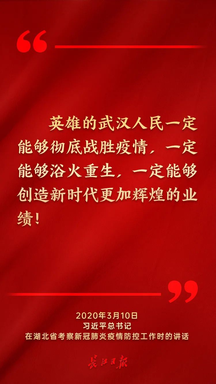 一路风雨,总书记为我们领航定向。早在大城重启之前,抗击疫情的关键时刻,总书记在武汉视察时就高瞻远瞩,统揽全局,做出了“疫情短期内会带来阵痛,但不会影响经济稳中向好、长期向好的基本面”的形势判断,要求中央和国家机关加大对湖北的支持力度,在湖北最艰难的时期“搭把手、拉一把”,指出湖北、武汉要危中寻机,化危为机,把疫情防控中催生的新业态、新模式加快壮大起来。
