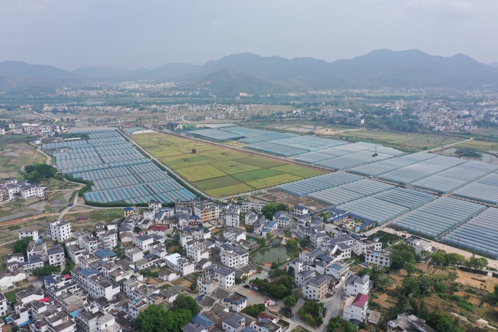 这是江西省于都县梓山镇潭头村航拍一景(4月7日 无人机拍摄)。新华社记者 彭昭之 摄