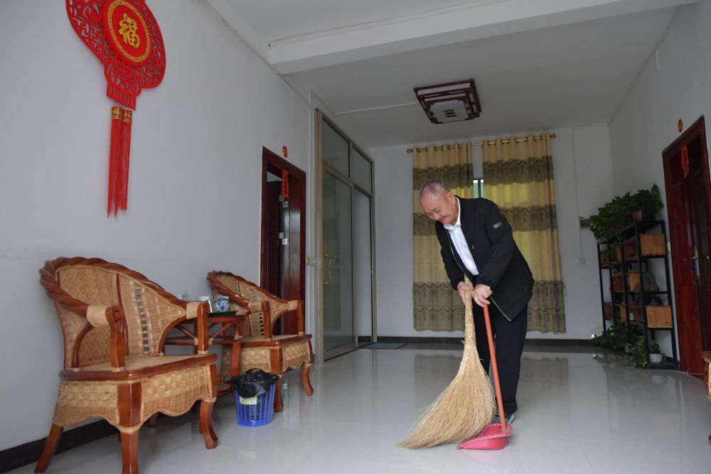 于都县梓山镇潭头村村民孙观发正在自家的民宿内打扫卫生(4月7日摄)。新华社记者 彭昭之 摄