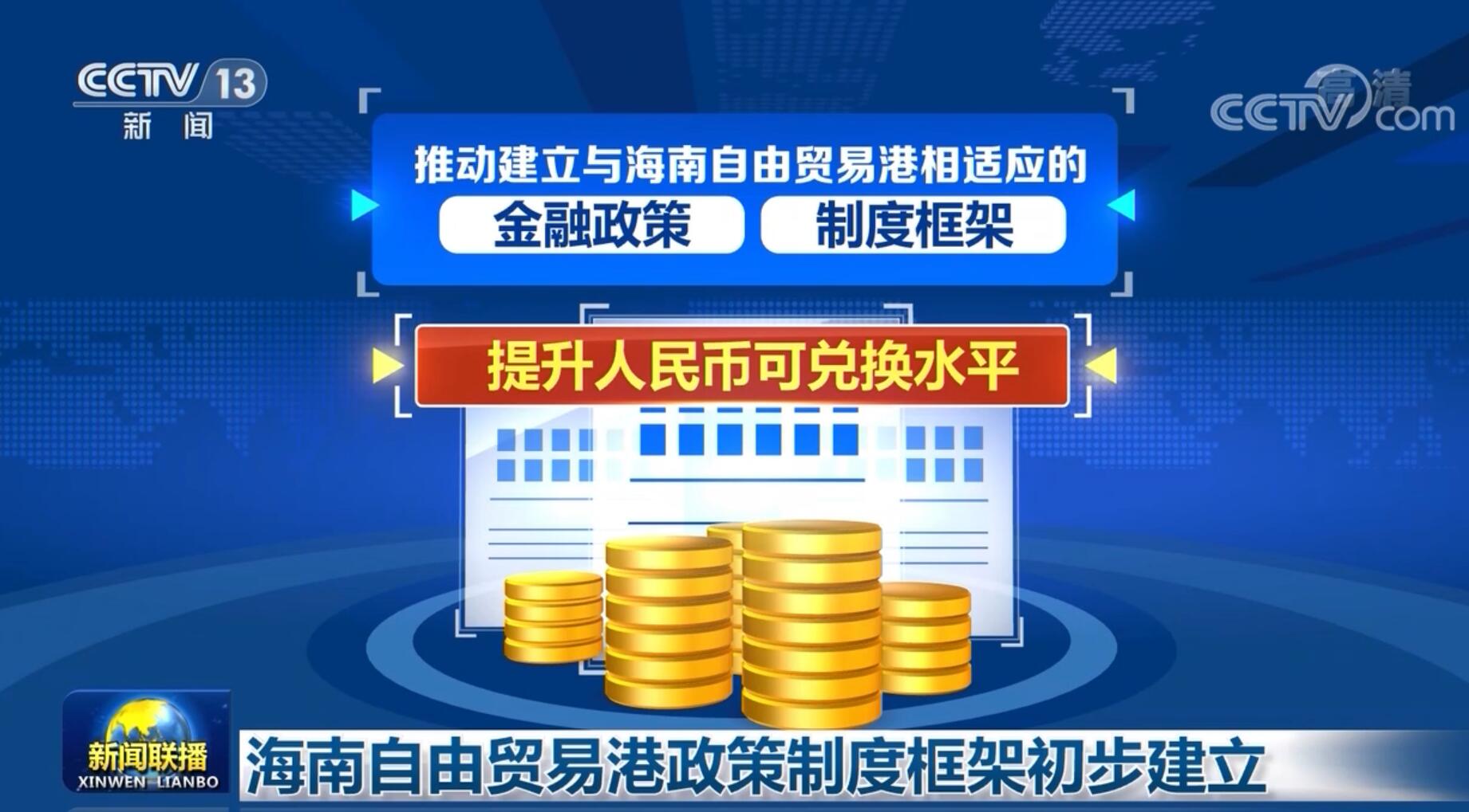 在金融支持政策方面,推动建立与海南自由贸易港相适应的金融政策和制度框架,提升人民币可兑换水平,推动跨境货物贸易、服务贸易以及新型国际贸易结算便利化。