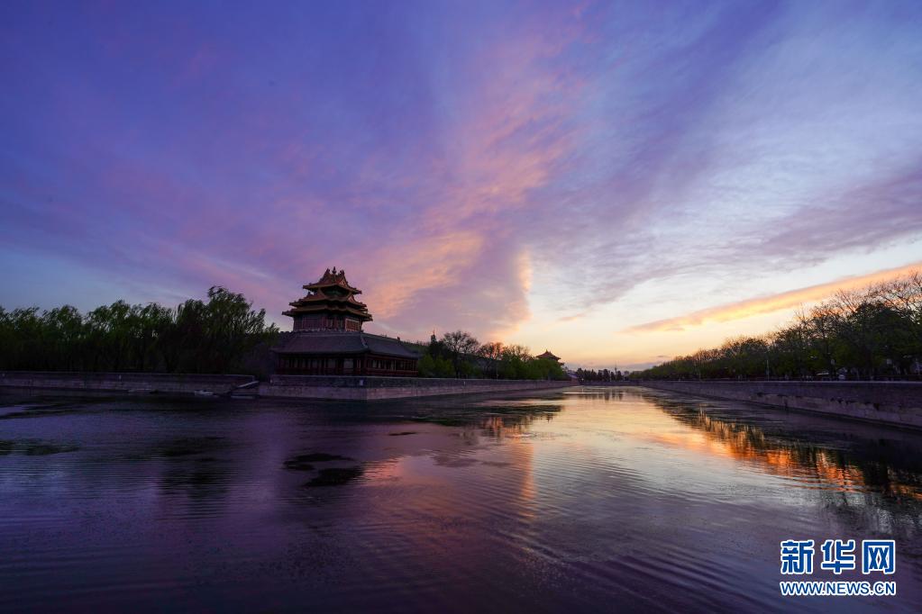 这是4月12日拍摄的夕阳下的故宫角楼。新华社记者 陈晔华 摄