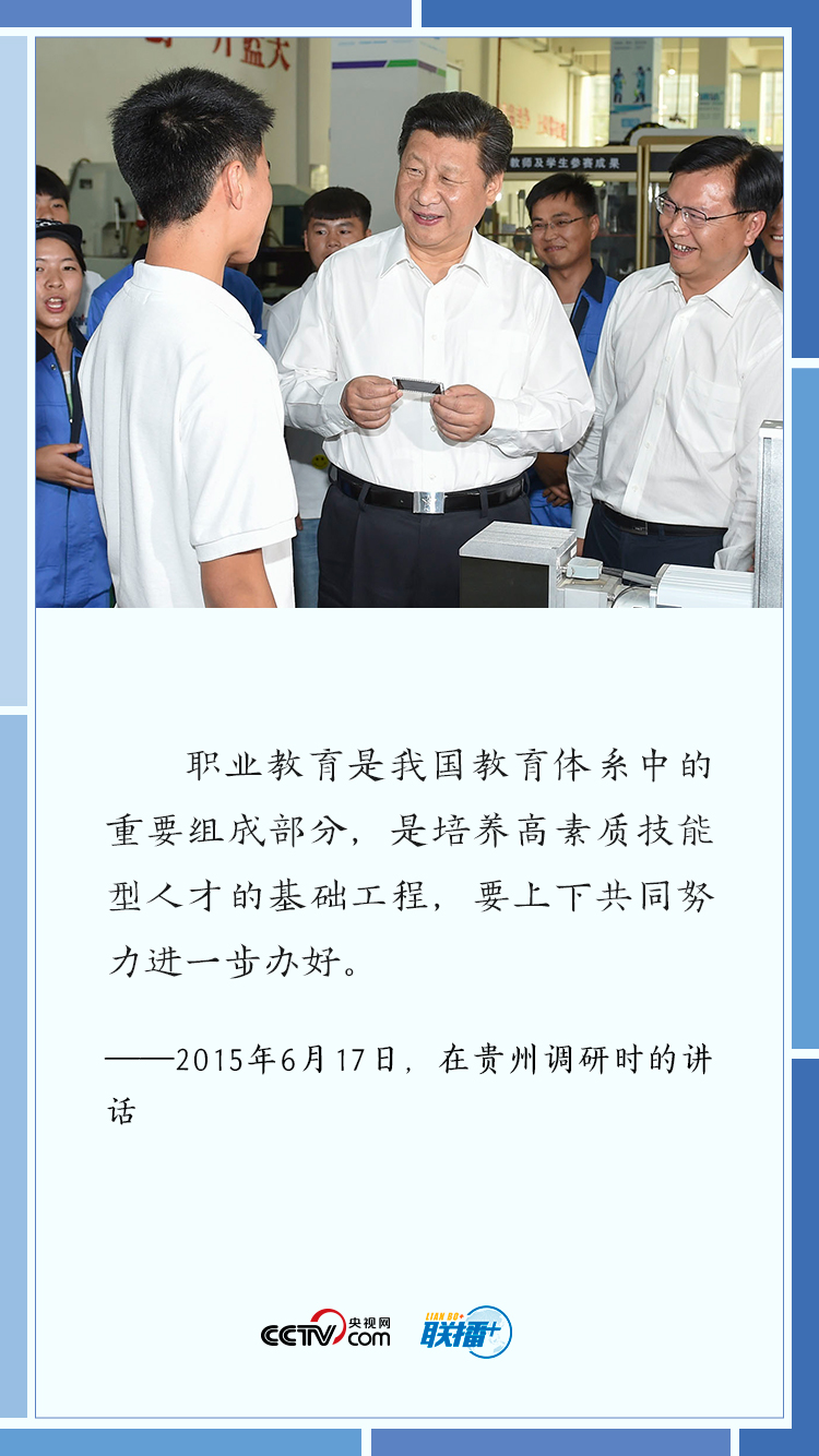 职业教育是国民教育体系和人力资源开发的重要组成部分,是广大青年打开通往成功成才大门的重要途径,肩负着培养多样化人才、传承技术技能、促进就业创业的重要职责。一直以来,习近平总书记都高度重视职业教育,关心技能型人才的培养。在福建工作时,他曾兼任闽江职业大学校长6年,提出“不求最大、但求最优、但求适应社会需要”的办学理念;赴地方考察时,他走进职教城、实训室,观看职业技能实训,同师生亲切交流;多次就职业教育工作作出重要指示……