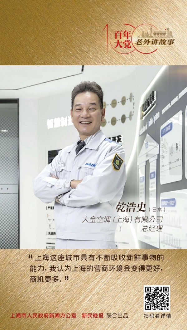 大金空调的总经理乾浩史在上海15年,他见证了上海的高速发展,对这片土地产生了浓厚的感情。