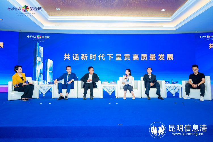 随后,呈贡区副区长王丹、中铁二院昆明公司经营部副部长朱一睿、诺仕达集团商业地产运营事业部总裁杨文宇、商业品牌代表胡以开、“昆明楼市”创始人文锋在“共话新时代下呈贡高质量发展”的话题下进行圆桌分享。他们就高铁开通、教育崛起、城市区域发展构建等方面展开讨论,为呈贡发展建言献策。