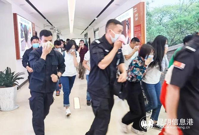 15点45分,随着一声警报声,防灾减灾应急演练正式开始。全体演练人员迅速选择掩体躲避,用毛巾捂着口鼻,弯着腰,沿着疏散通道迅速、有序地撤离到空旷地带。演练中,各个环节紧张有序,各部门人员各司其职、密切协同,达到了预期效果。