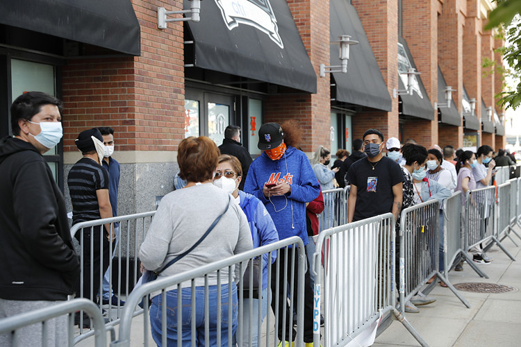 当地时间2021年5月12日,在美国纽约,市民正在排队等待接种疫苗(图片来源:中新社)