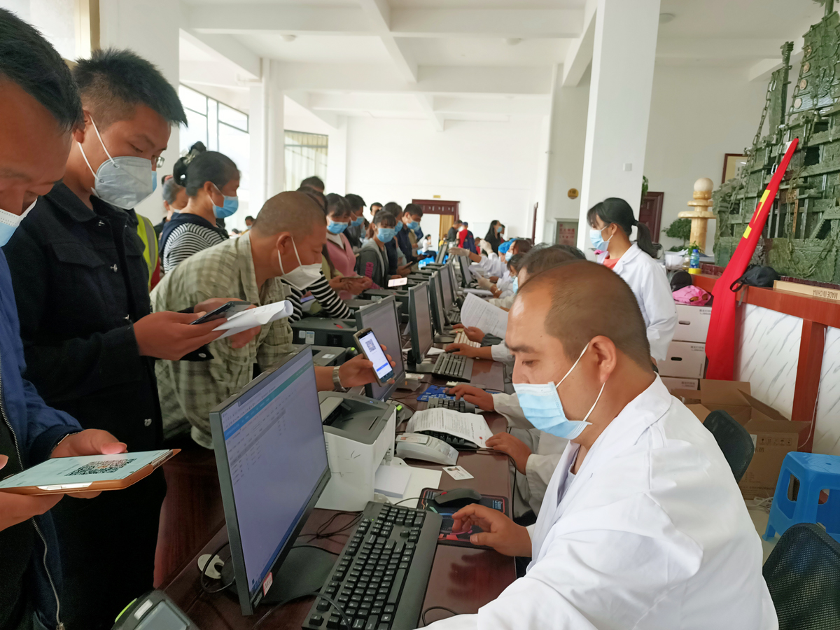 为了保证疫苗接种的顺利进行,这个接种点除了配备46名医护人员、设置10个接种窗口外,还增加了晋城镇、晋宁工业园区管委会及志愿者等近60名人员。