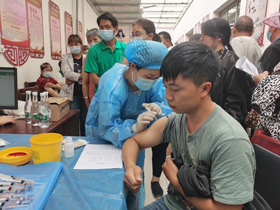自疫苗接种工作开始以来,金马街道通过广泛收集群众诉求、分析研判辖区居民分布情况,与金马卫生院多番交换意见,创造性地提出把疫苗接种点设置到“市场里、公司下、家门口”。截至目前,除了金马街道卫生服务中心这一固定接种点外,街道还设置了中国铁建高新装备有限公司、云南盛达物流中心、金马正昌水果市场、昆东社区等6个流动接种点。对于这一举措,辖区居民纷纷称赞:“固定接种点离我们太远了,街道设置这个临时接种点,让我们在家门口就能接种,真的太方便了!”