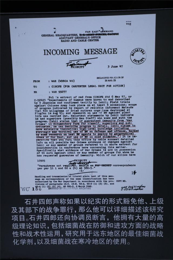 对苏联的诺门罕战役,对中国的宁波、衢州、常德战役,他用丧失人性的所谓“研究成果”——鼠疫菌、鼠疫跳蚤、陶瓷细菌弹,犯下了滔天罪行,成为一个彻底的细菌战犯。