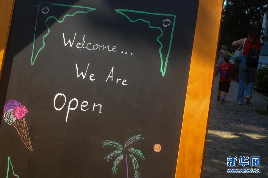 6月9日,在比利时布鲁塞尔,人们走过一家营业的冰淇淋店。新华社记者郑焕松摄