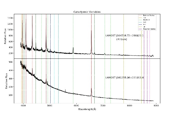 图8. LAMOST中的激变变星光谱 (图源:Hou, et al., AJ, 2020, 159, 43)