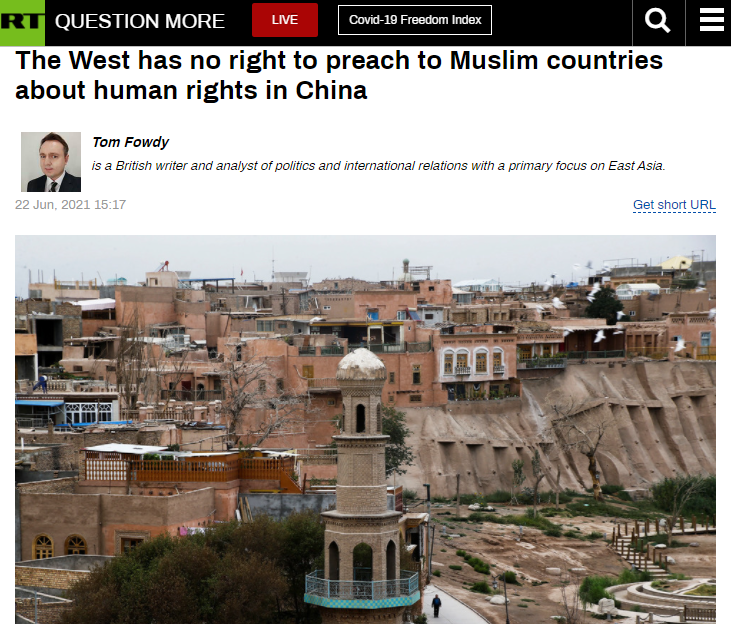 海外网6月23日电 英国作家、政治和国际关系分析人士汤姆·福迪23日在“今日俄罗斯”网站发表署名文章《西方没有权利向穆斯林国家宣扬中国“人权”问题》,直指西方国家和媒体在穆斯林问题上采取双标态度。