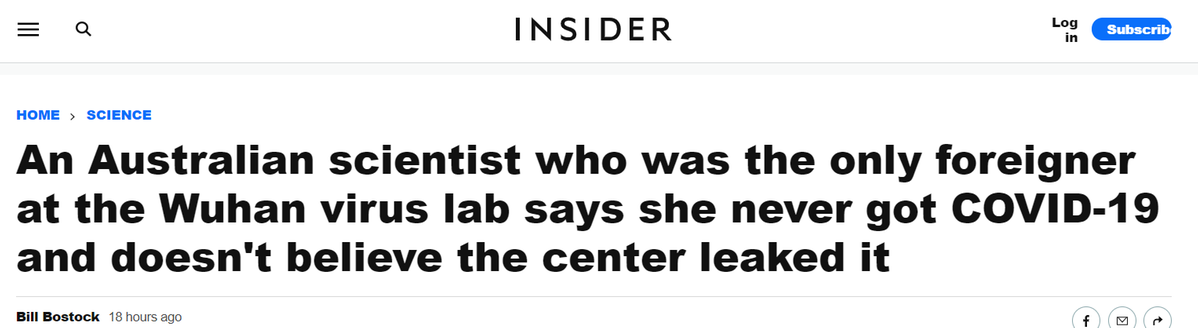 报道称,丹妮尔•安德森是唯一一位在武汉病毒研究所P4(最高生物安全等级)实验室进行研究的外国科学家。该实验室是中国第一个配备了处理地球上最致命病原体设备的实验室。作为一名研究蝙蝠传播病毒的专家,安德森曾在2019年下半年在武汉病毒研究所进行为期数月的“访学”工作,直到2019年11月结束,这为了解武汉病毒研究所提供了一个内部人士的视角。