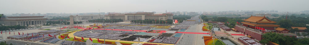 这是我第一次在如此特殊的角度近距离观看整个天安门广场。此前虽然有两次演练,但那都是在深夜,且会场布置尚未完工,无法掌握全貌。