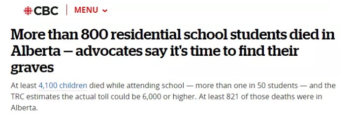 根据加拿大政府的记录,约有4100名原住民儿童死在寄宿学校里,而“真相与和解委员会”的统计显示,实际的死亡人数超过了6000人甚至更多。