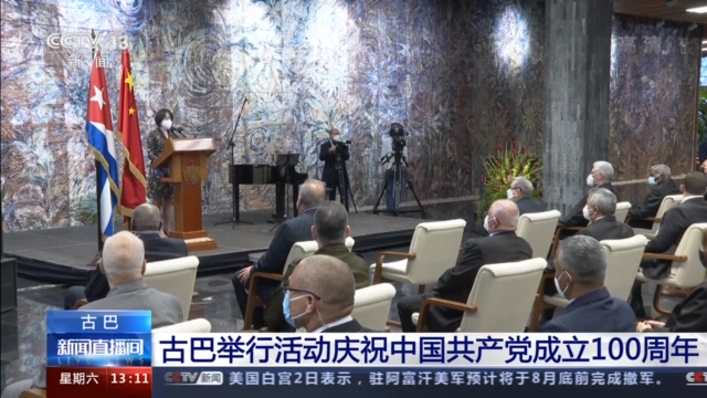 当地时间7月1日晚,古巴共产党在哈瓦那革命宫举行活动,庆祝中国共产党成立100周年。古巴革命领袖劳尔·卡斯特罗,古共中央第一书记、国家主席迪亚斯-卡内尔,古共中央政治局委员、书记处分管组织工作和干部政策的书记罗伯托·莫拉莱斯等出席活动。