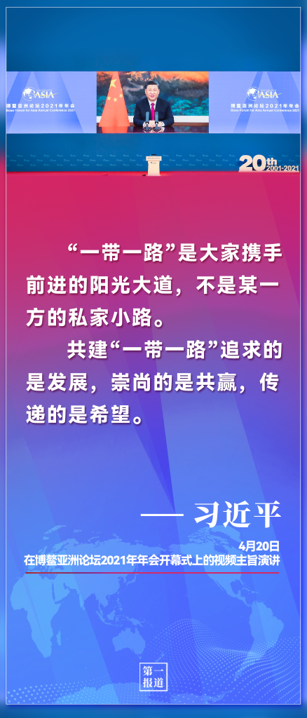 正如习近平主席在博鳌亚洲论坛2021年年会上所说,“一带一路”是大家携手前进的阳光大道,不是某一方的私家小路。面向未来,中国将同各方继续高质量共建“一带一路”,把“一带一路”建成“减贫之路”“增长之路”,为人类走向共同繁荣作出积极贡献。