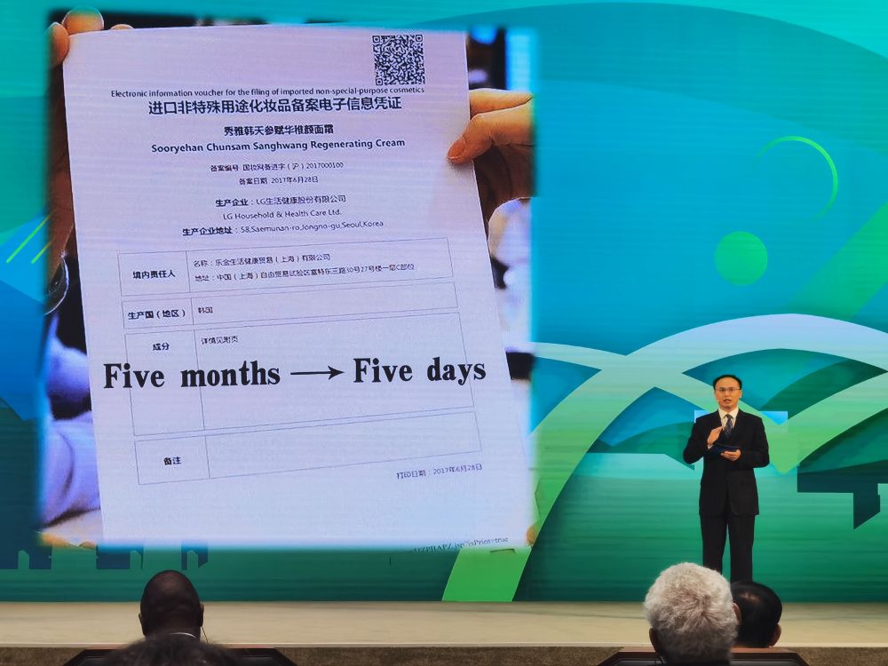 2021年6月16日,在“中国共产党的故事——习近平新时代中国特色社会主义思想在上海的实践”特别对话会上,中国(上海)自由贸易试验区管委会政策研究局副局长郑海鳌进行讲述。 新华社记者 吴宇 摄