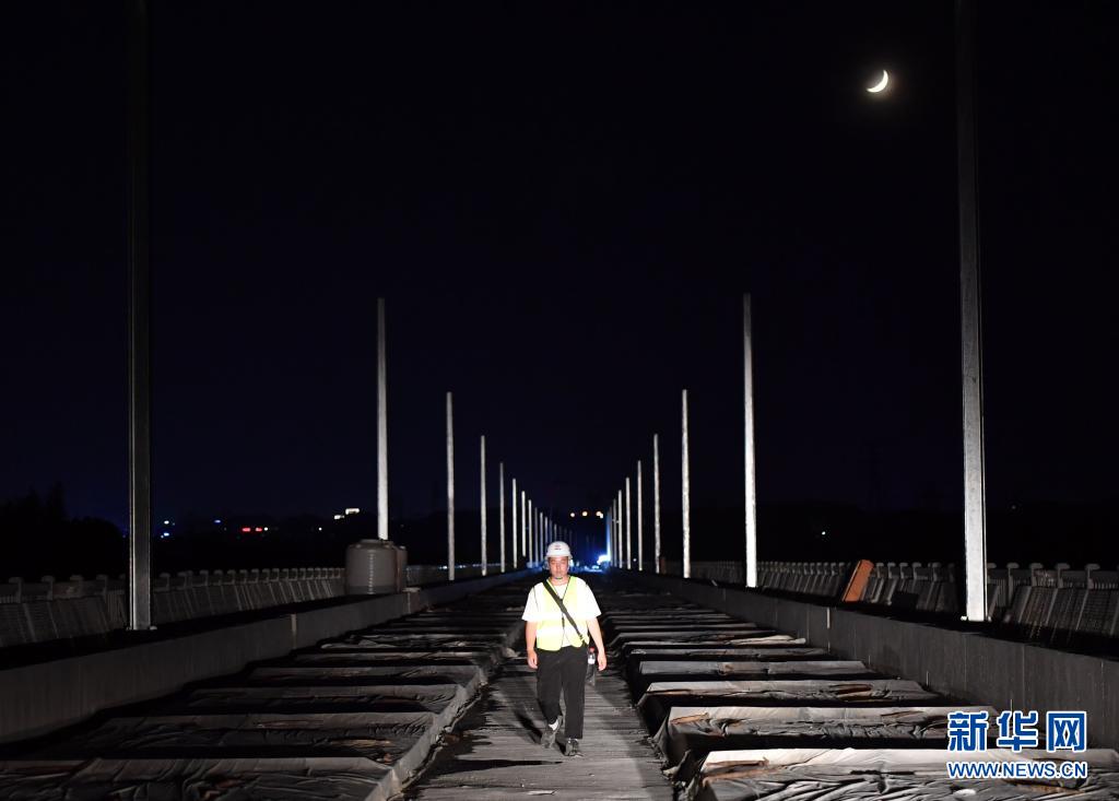 7月14日,中铁十一局技术人员检查无砟轨道底座板混凝土养护工作新华社记者 赵众志 摄