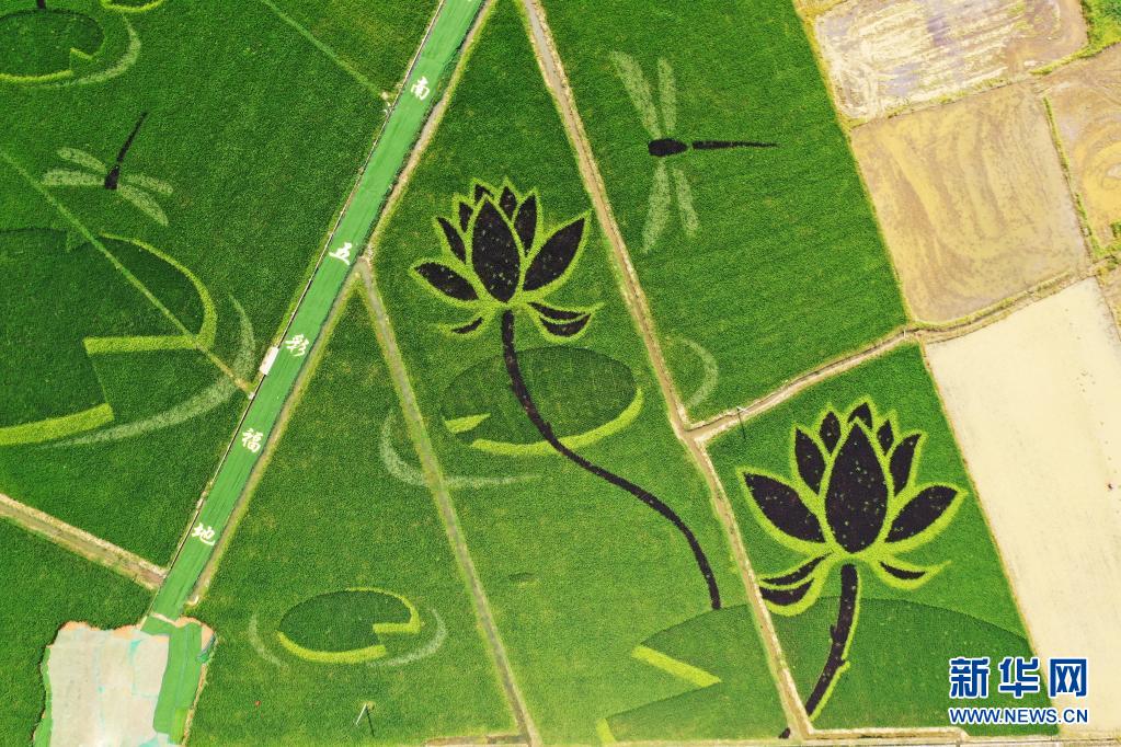 这是7月16日拍摄的彩色稻田画(无人机照片) 新华社记者 万象 摄
