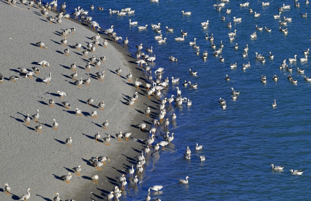 西藏雅尼国家湿地公园水鸟翔集(2021年2月2日摄)。