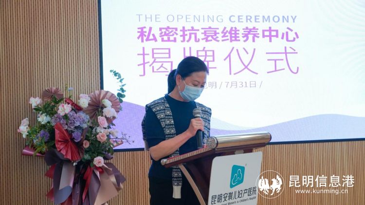 仪式上,昆明安琪儿妇产医院常务副院长张红女士向莅临本次仪式的行业协会、专家们致以热烈的欢迎和诚挚的感谢。她指出,关爱女性、呵护健康具有必要性和重大意义,昆明安琪儿妇产医院作为西南首家非公三甲妇产专科医院,在政府部门、行业领导的支持与指导下,以女性健康为出发点,成立医疗级私密抗衰维养中心,这不仅是昆明安琪儿自成立以来取得的重要成果,同时也为广大春城女性带来福音。她表示,昆明安琪儿将坚持以卓越的医疗品质,不断追求完美的服务精神,以“质量、安全、管理、服务、效益”为核心,为我市广大女性的健康保驾护航。