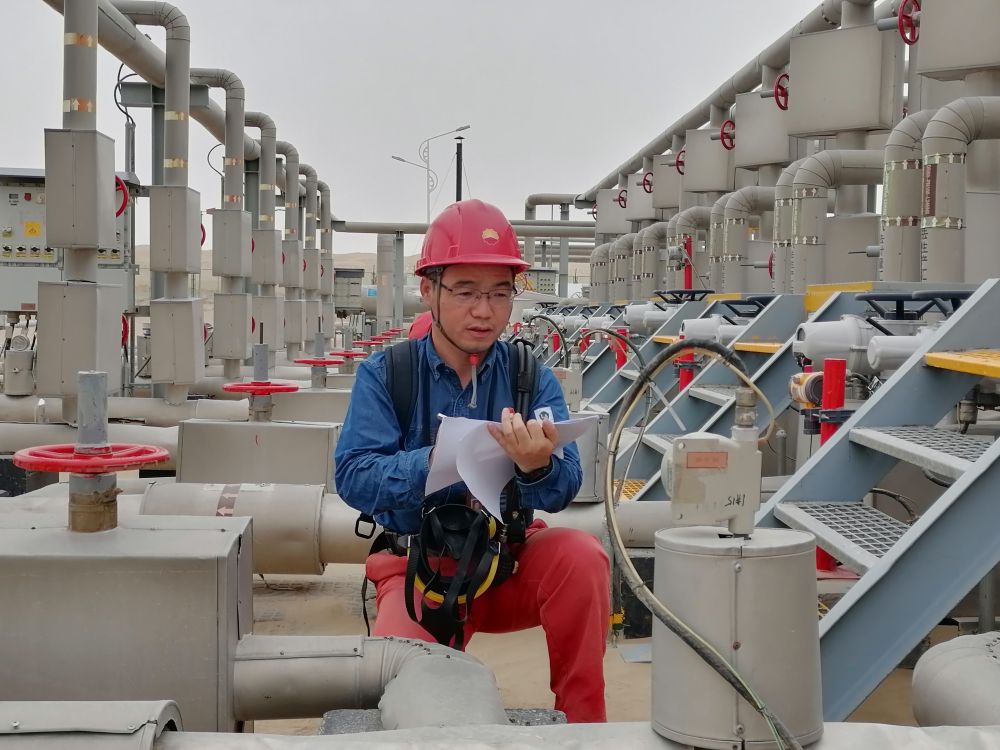 油区不少集输管线建设在没有硬化的沙漠里。今年5月的一天早上,冯光像往常一样检查设备后准备开工,突然发现,一条远离硬化路面、长达六七百米的油气管线有失效风险。