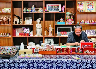 陕西省西安市长安区王莽街道小峪口村积极引进非物质文化遗产,形成集非遗传承、文创发展为一体的乡村振兴新模式。图为泥塑艺人在小峪口村工作室内创作。新华社发