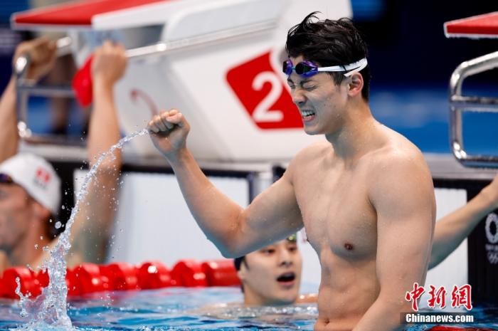 当地时间7月30日,东京奥运会男子200米混合泳决赛中,中国选手汪顺以1分55秒夺得冠军,继里约奥运会夺得该项目铜牌后成功登上最高领奖台。这也是中国游泳队在本届奥运会男子项目上收获的第一枚金牌。中新社记者 富田 摄