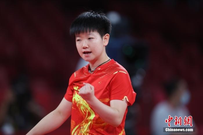 8月3日,中国队球员孙颖莎在比赛中。当日,东京奥运会举行乒乓球女子团体比赛,中国队战胜新加坡队,晋级四强。 中新社记者 韩海丹 摄