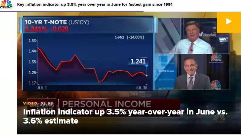 △CNBC美国消费者新闻与商业频道(CNBC)网站:衡量通胀水平的美国核心个人消费支出价格指数(PCE)6月同比上涨3.5%,创近20年来最大同比涨幅。