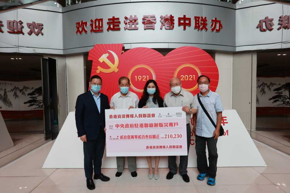 香港资深传媒人员联谊会向香港中联办递交捐款支票。受访者供图