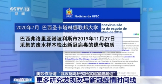 巴西圣卡塔琳娜联邦大学去年7月发表研究报告说,研究小组在弗洛里亚诺波利斯市2019年11月27日采集的废水样本中检测到了新冠病毒的遗传物质。这比巴西报告首例新冠病例的时间提前了约3个月。