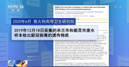 意大利高等卫生研究院去年6月发表公报说,研究人员在2019年12月18日取样的米兰市和都灵市废水中检测到了新冠病毒的遗传物质。