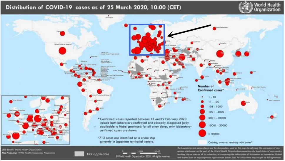 引用自世卫组织3月25日新冠病毒疫情报告。图片来源:世卫组织