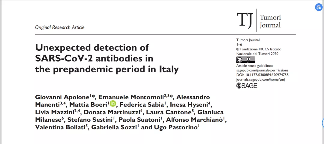 学者们从其他类型患者的保留样本中推进新冠病毒溯源。2020年11月,《肿瘤杂志》刊登了意大利国家肿瘤研究中心学者的研究《意想不到!意大利大流行前检测出新冠病毒抗体》,研究人员在保留的肺癌患者血液样本中,找到了新冠病毒的抗体。